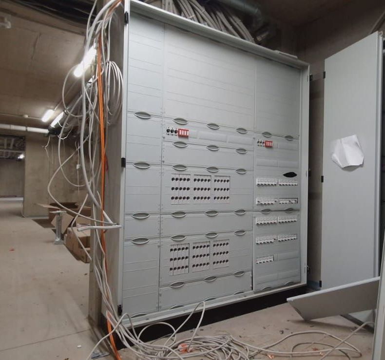 Komplette Elektroinstallationsarbeiten in mehreren Studentenwohnungen sowie den gewerblichen Einheiten: Leitungsverlegungen in allen Bereichen, Unterverteilungen in den jeweiligen Wohn- und Gewerbeeinheiten, Planung und Installation von Zählerschränken, Beleuchtungen in Allgemeinbereichen sowie in allen Wohn- und Gewerbeeinheiten, Gegensprechanlagen-Installation, BHKW-Anschluss und Anmeldung.